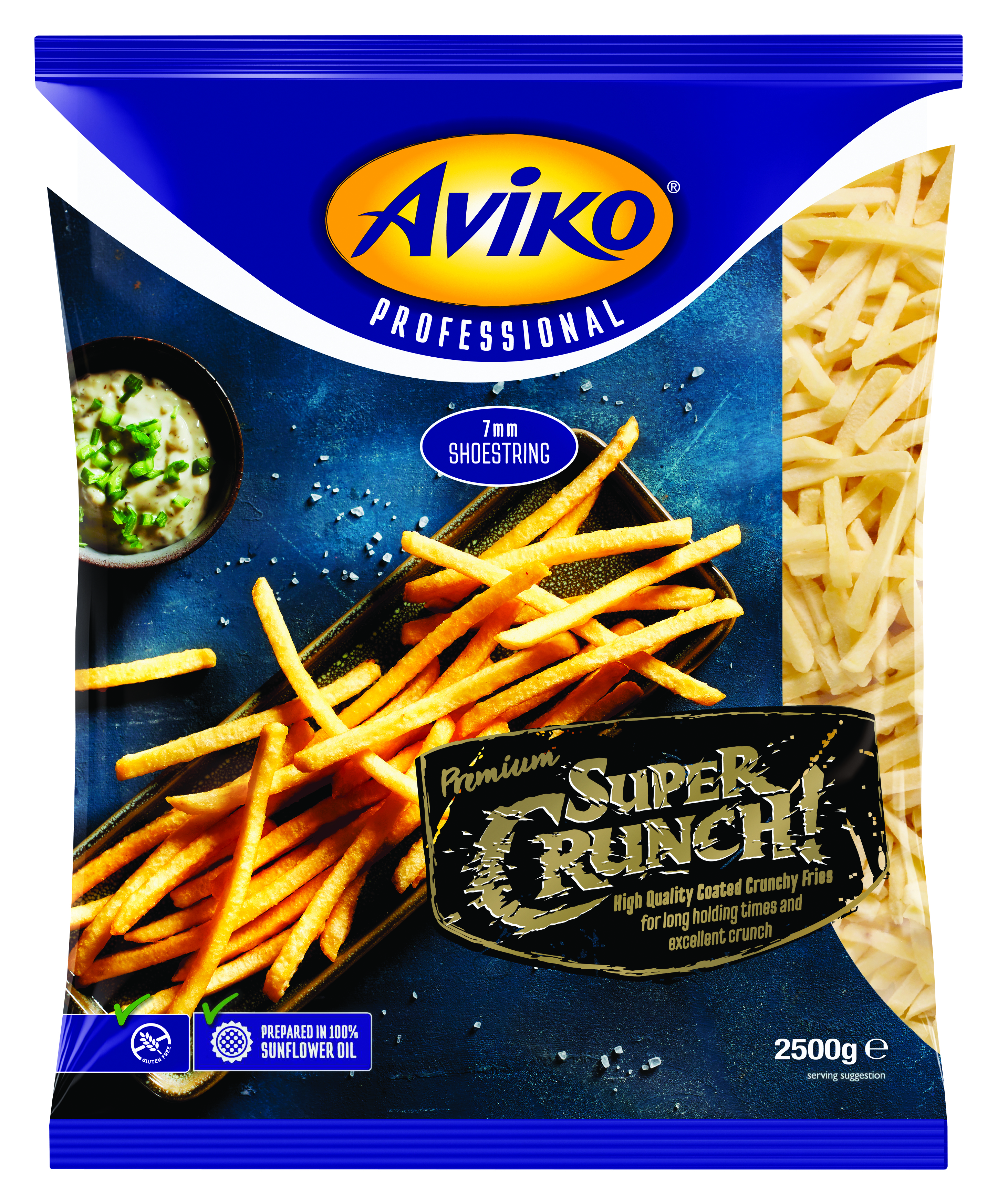 Patatine extra sottili, 7 mm, estremamente croccanti, prefritte e surgelate.