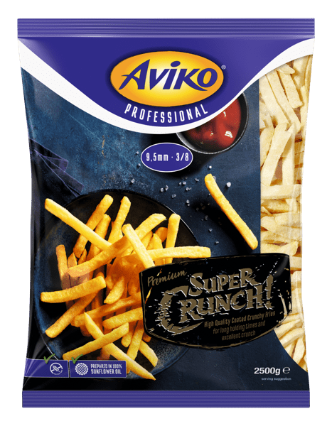 Patatine fritte extra croccanti da 9,5 mm, prefritte e surgelate.